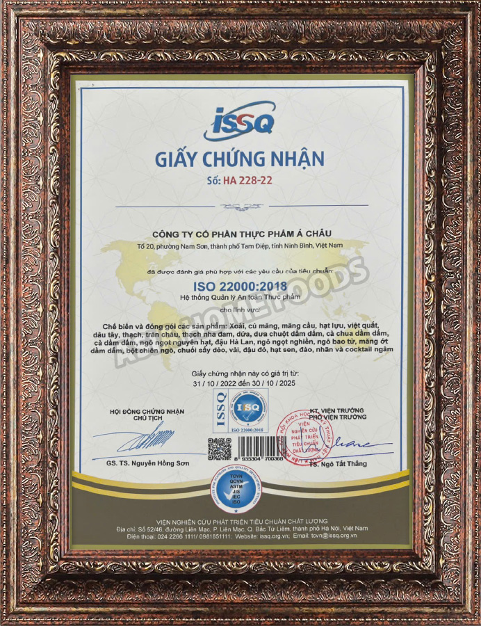 Công ty Cổ phần Thực phẩm Á Châu (ASIA HOME), thành lập năm 2006 tại Ninh Bình, là một trong những doanh nghiệp tiên phong trong lĩnh vực chế biến và xuất khẩu nông sản. Với hai thập kỷ kinh nghiệm, chúng tôi mang nông sản Việt đến hàng triệu bữa ăn trên thế giới, giữ trọn vị ngon tự nhiên trong từng sản phẩm.