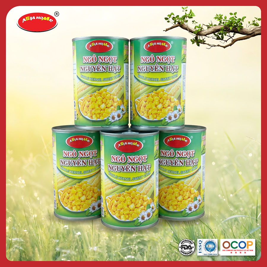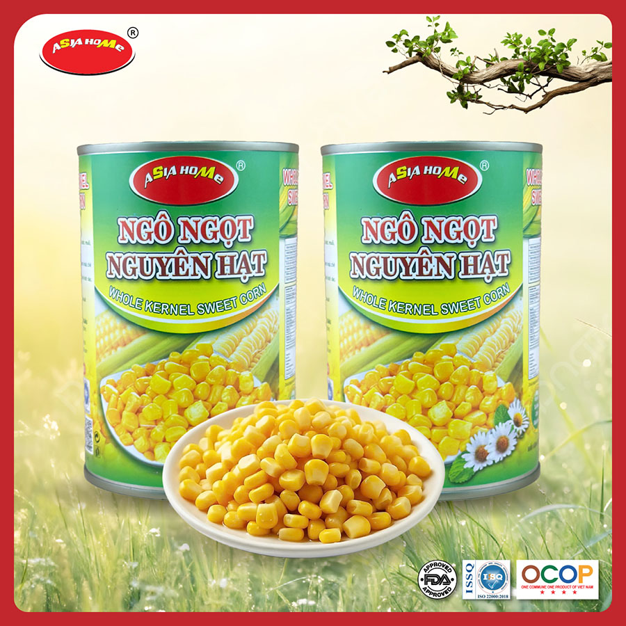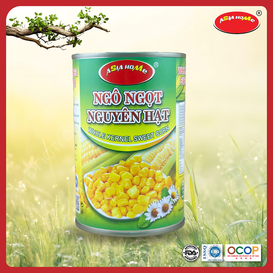 Ngô ngọt nguyên hạt lon 450g ASIA HOME được sản xuất trên dây chuyền hiện đại, đáp ứng các tiêu chuẩn an toàn thực phẩm nghiêm ngặt. Sản phẩm:
